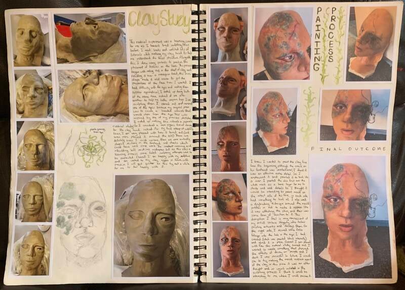 Sketches of faces and a concept idea for a sculpture I intended to make