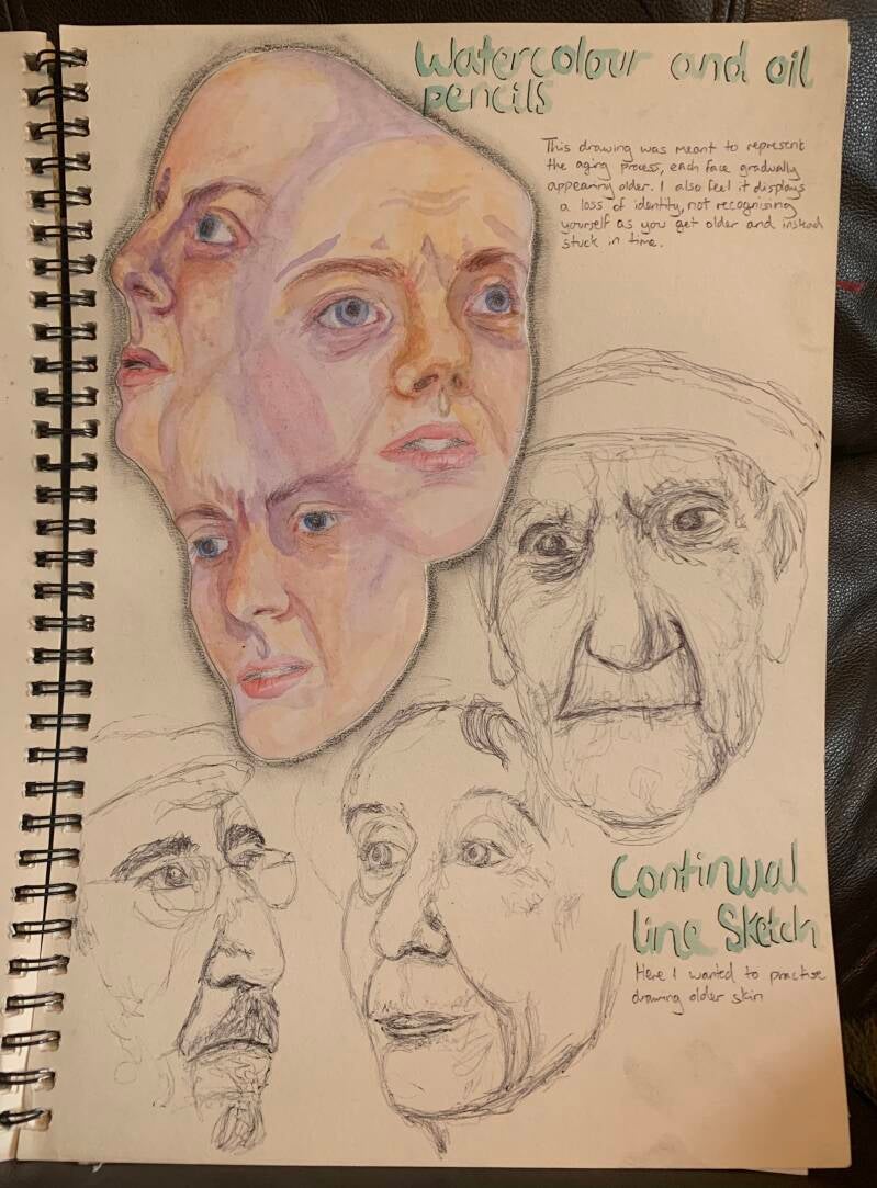 Drawing inspired by the effects of dementia and some continual line drawings of the elderly
