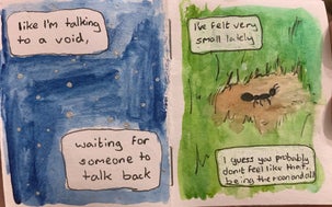 This is the first of the mini books I have written and illustrated. 'Of Course' was drawn using watercolour, fine liner and a metallic silver ink pen. It's about a lonely girl finding comfort in her late night chats to the moon.